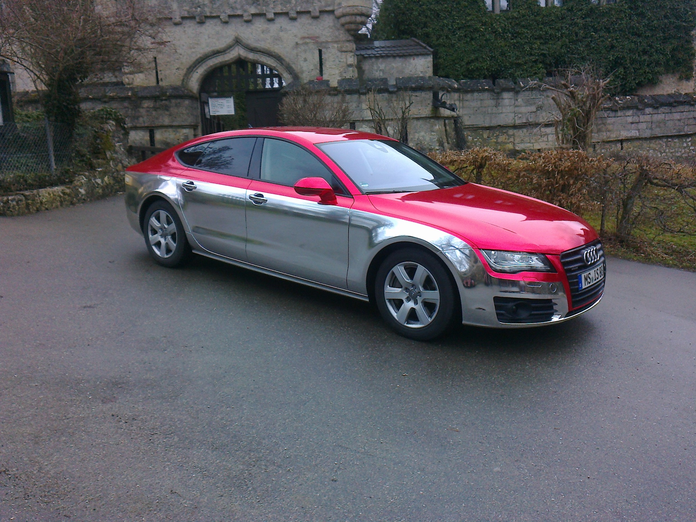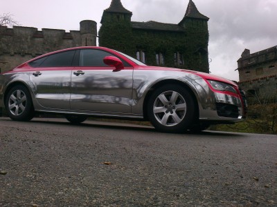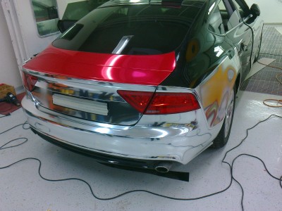 das war eine große Herausforderung für Mensch und Folie. Die Schwierigkeiten liegen bei Chrom in der Zusammensetzung des Materials. Um den Chrom-Effekt zu bekommen, braucht es in der Regel eine Polyesterschicht. Diese lässt sich kaum verformen. Auch der Preis für eine Chromfolierung ist eine ganz andere Hausnummer.