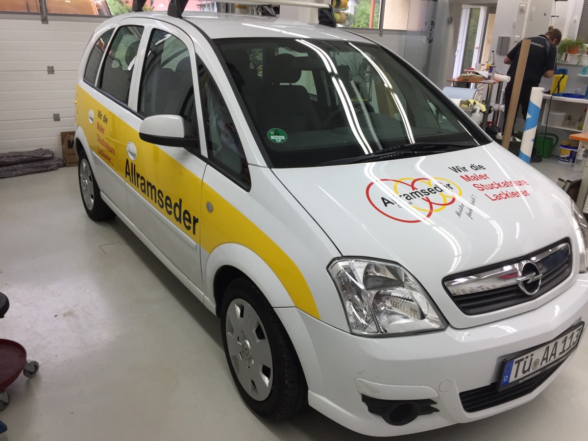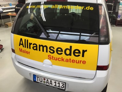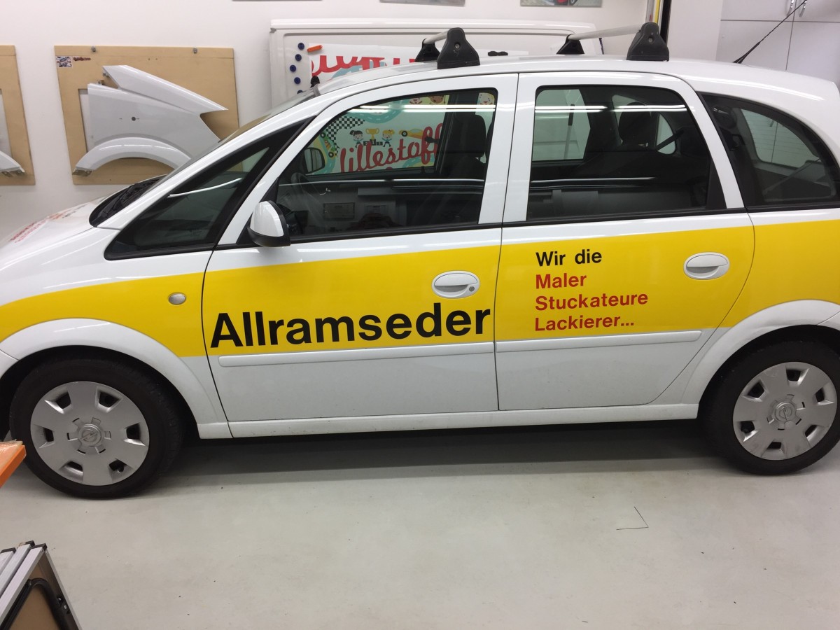 gelbe Wrappingfolie und computergeschnittene Klebeschriften