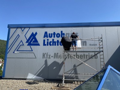Die über 12 Jahre alte Erstbeschriftung wurde fachgerecht erneuert. Nötig war dies durch die südliche Sonnenausrichtung des Gebäudes.