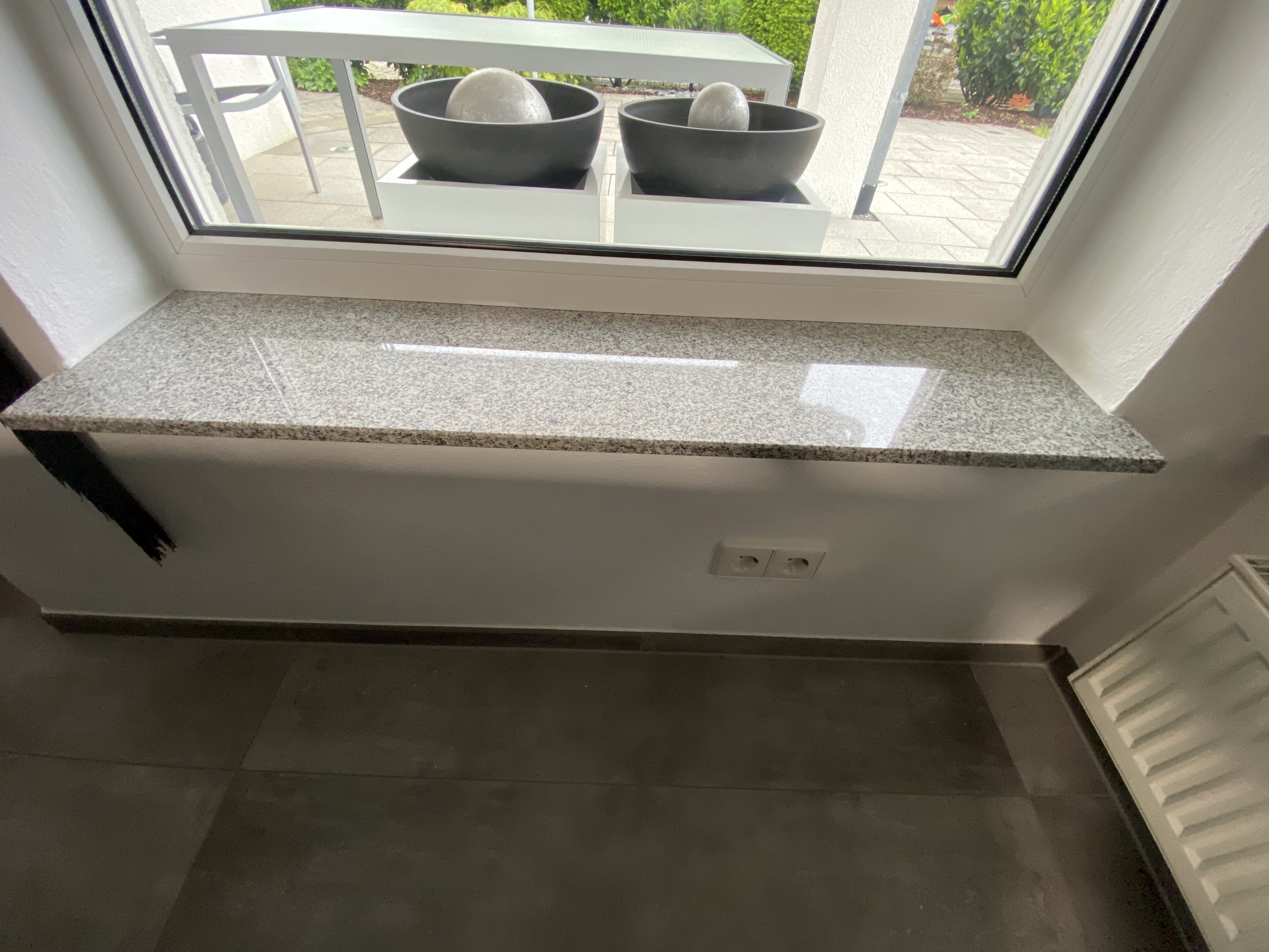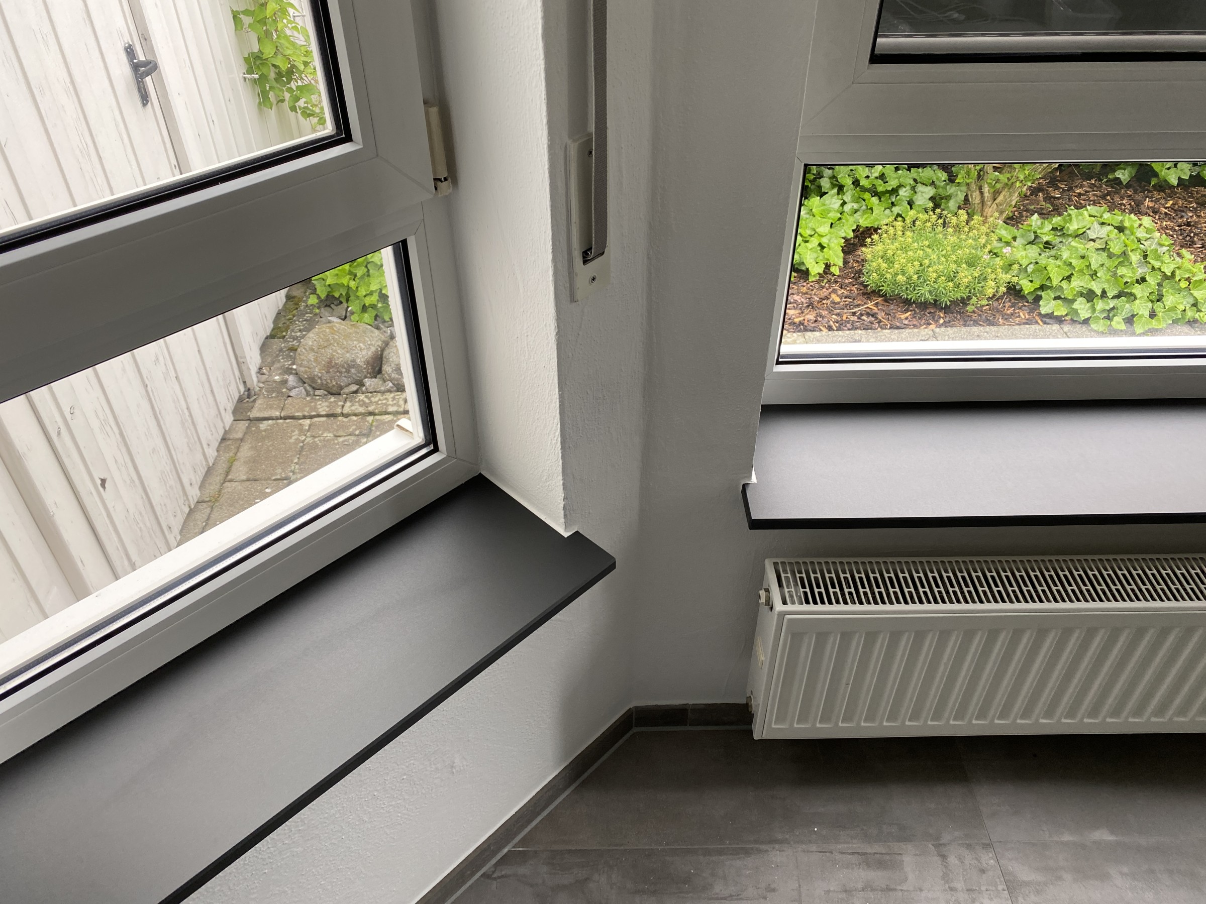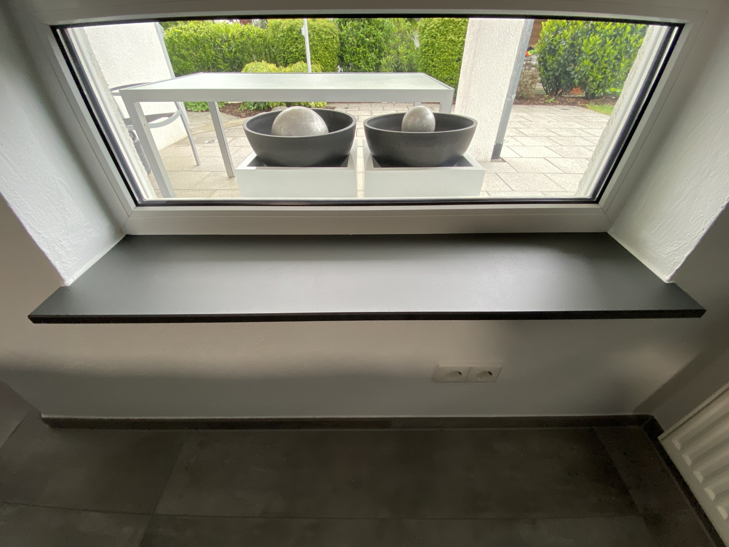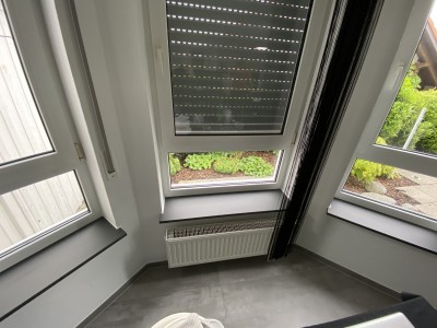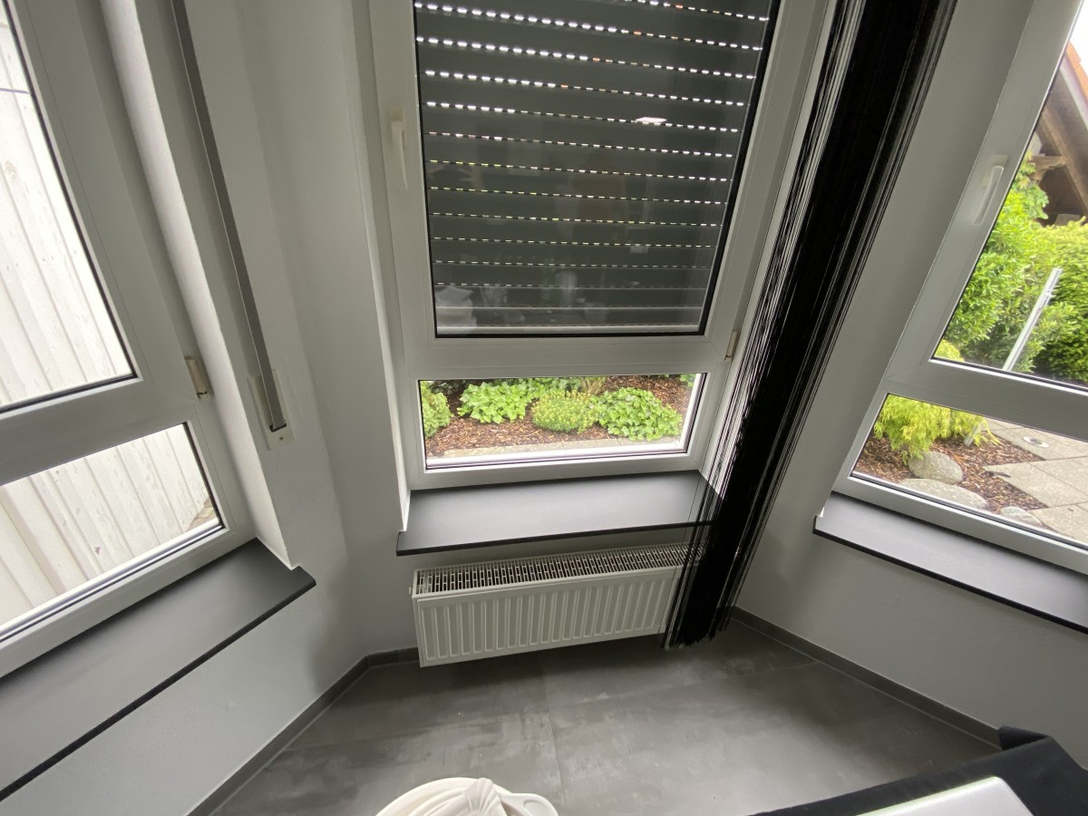 Falls auch Sie eine Veränderung in Ihren Privaträumen wünschen, sind wir auch hier Ihr Ansprechpartner. Unsere Kundin wollte eine kleine Veränderung. Hier haben wir die Fensterbänke von einer Marmor Optik in schwarzmatt beschichtet.